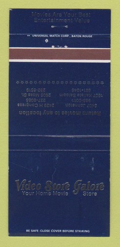 Matchbook Cover Video Store Galore Movies Lafayette La 30 Strike Ebay